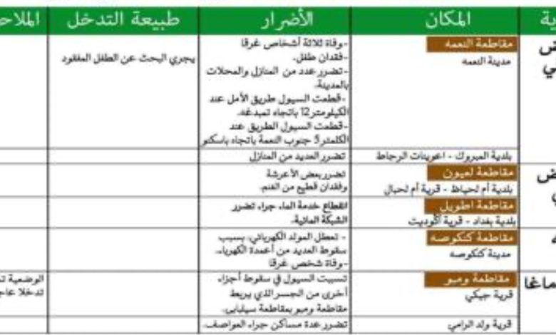 تضمنت نشرة الطوارئ الصادرة عن وزارة الداخلية وترقية اللامركزية والتنمية المحلية اليوم السبت، عددا من الأضرار البشرية والمادية الناجمة عن…