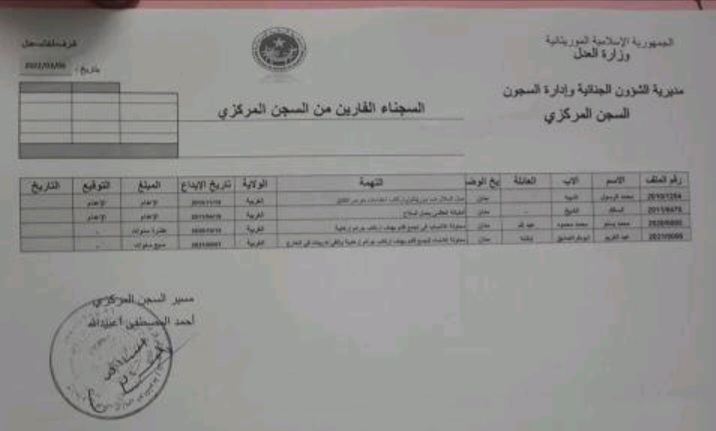 أكمل القراءة »نشر مسير السجن المركزي بنواكشوط ،هويات السجناء الهاربين ومحكومياتهم ،ويتعلق الامر ب: محمدالرسولاشبيه التهمة حمل السلاح ضد موريتانيا وارتكاب اعتداءات…