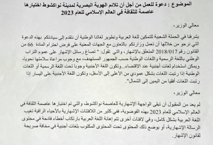 أكمل القراءة »نص البيان: معالي الوزير، يشرفنا في الحملة الشعبية للتمكين للغة العربية وتطوير لغاتنا الوطنية أن نتقدم إلى سيادتكم بهذه الدعوة…
