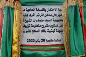 و انه “بعد التمكن السنة الماضية من تعزيز إنتاج المياه الصالحة للشرب وتحسين شبكة التوزيع بمدينة وادان التي استضافت النسخة العاشرة من هذا المهرجان، ها أنتم صاحب الفخامة تشرفون اليوم على تدشين مكونات مائية هامة ستسمح بمضاعفة إنتاج الماء الصالح للشرب بمدينة تيشيت وتوسيع نطاق توزيعه، بعد ما سئمت هذه المدينة العريقة خلال العقود الماضية من شح في المياه وعدم جودة المتوفر منها”.