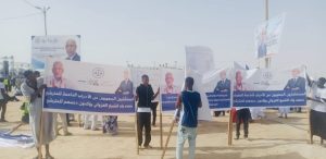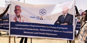 المستشارون الجهويون من الأحزاب الداعمة للمرشح محمد ولد الشيخ الغزواني،يشاركون في المهرجان الختامي لحملة المترشح في المطار القديم بالعاصمة نواكشوط،وحمل عدد من الشباب لافتات كتب عليها دعم المستشارين اللامشروط لولد الغزواني.