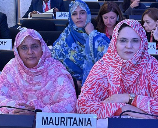 وضم وفد موريتانيا السيدة عيشة فال فرجس، سفيرة بلادنا في جنيف، والسيدة رباب كابر هاشم، والسيد گيسي چلل.