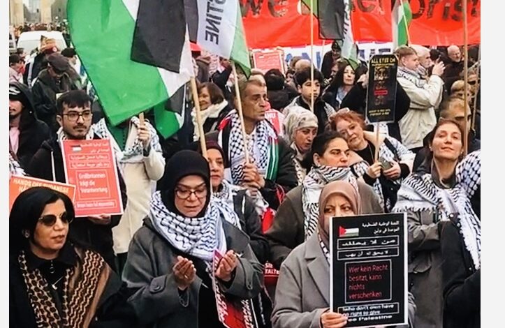 تواصلت في عدد من المدن الألمانية، اليوم، مظاهرات حاشدة تضامناً مع الشعب الفلسطيني، حيث خرج مئات المشاركين رافعين الأعلام الفلسطينية ومرددين هتافات تطالب بوقف الاعتداءات ودعم الحقوق المشروعة للفلسطينيين.