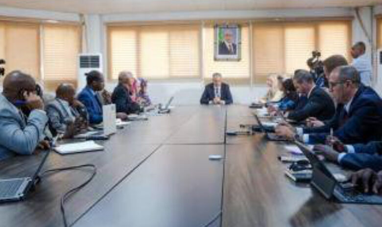 عقد  وزير الطاقة والنفط السيد محمد ولد خالد، صباح اليوم الاثنين بمقر الوزارة، جلسة عمل مع البعثة رفيعة المستوى من مجموعة البنك الإفريقي للتنمية التي تزور موريتانيا حاليا.