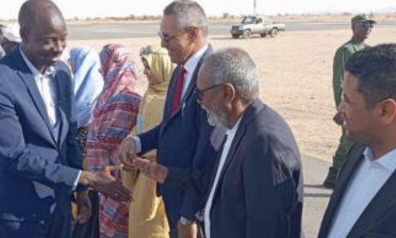 واستقبل الوزير في مطار ازويرات من قبل والي تيرس زمور الطيب ولد محمد محمود رئيس جهة تيرس زمور الحضرامي ولد احمادي والسلطات الإدارية والأمنية.
