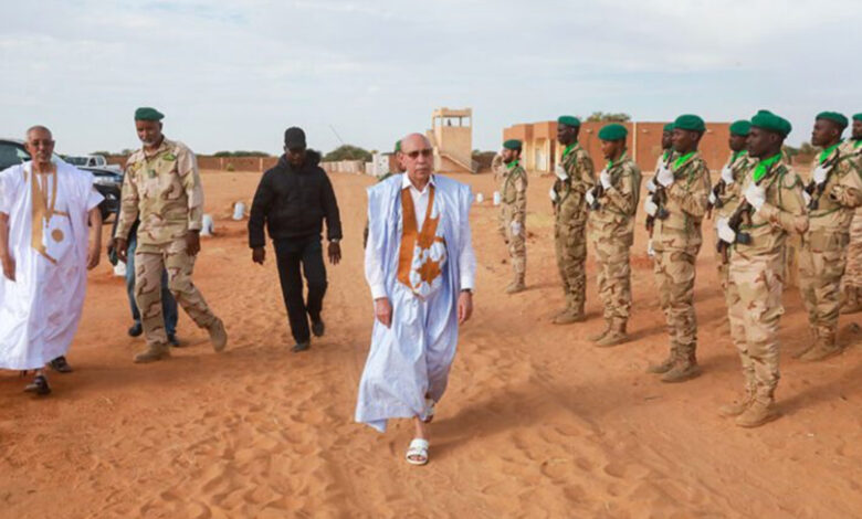 أدى الرئيس محمد ولد الشيخ الغزواني اليوم الاثنين زيارة ميدانية لتجمع المشاة المحمول رقم 51 في باسكنو قرب الحدود مع مالي، للاطلاع على ظروف عمل القوات المسلحة المرابطة في المنطقة. وقدّم الرئيس تهانيه لعناصر الكتيبة تقديرًا لتضحياتهم وصمودهم في مواجهة التحديات الأمنية، مشددًا على أن “أمن البلاد مسؤولية مشتركة بين السكان والأجهزة الأمنية والعسكرية”. وأشار إلى أن التركيز على المناطق الحدودية يأتي انسجامًا مع خصوصية الوضع الأمني الراهن، وسط تصاعد التوترات على الحدود الموريتانية المالية بسبب استمرار الأوضاع غير المستقرة في مالي.