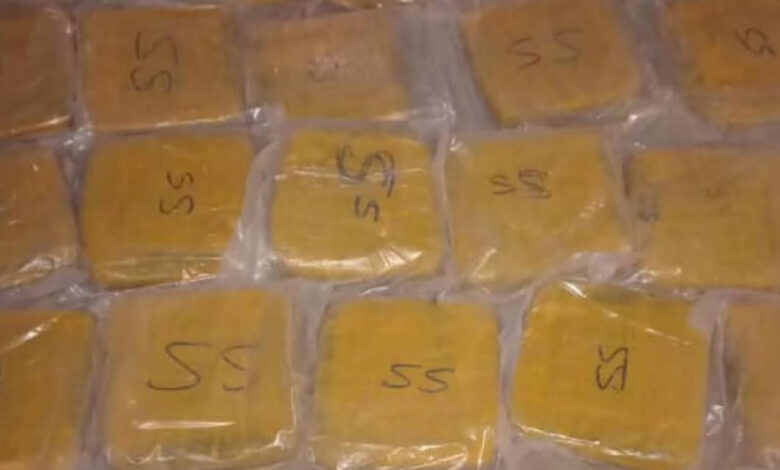 وقد تم توقيف المشتبه به متلبسا بحيازة كمية المخدرات البالغة 27 كلغ موزعة على 30 صفيحة.