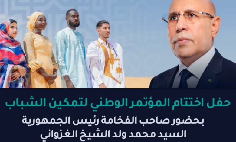 ينعقد مساء اليوم في قصر المؤتمرات المرابطون، المؤتمر الوطني لتمكين الشباب تحت رعاية صاحب الفخامة رئيس الجمهورية السيد محمد ولد الشيخ الغزواني.