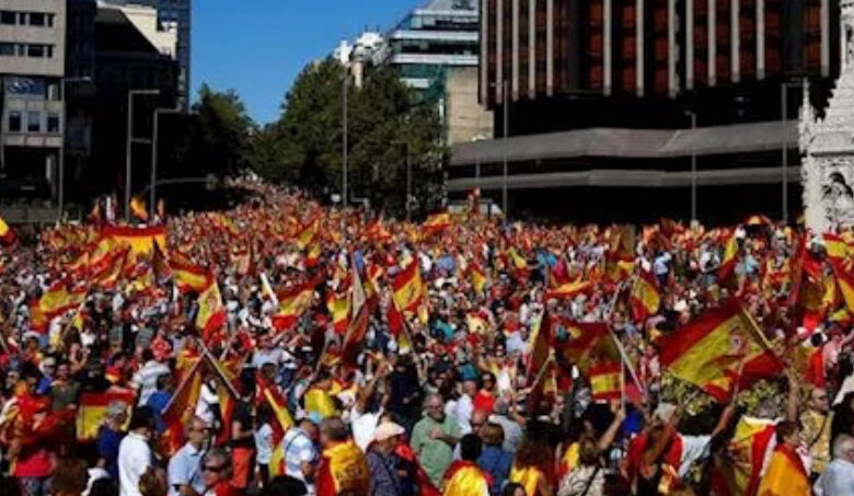 خرج عشرات الآلاف من الأشخاص إلى شوارع مدريد اليوم الأحد، للاحتجاج ضد رئيس وزراء إسبانيا بيدرو سانشيز، واتهموا حكومته اليسارية بالفساد وطالبوا باستقالته وإجراء انتخابات مبكرة.