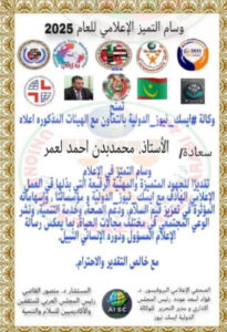 كرّمت مؤسسة «إيسك أنيوز الدولية»، بالشراكة مع هيئات إعلامية، النقيب والعميد محمد بدن أحمد لعمر بمنحه وسام التميز في الإعلام، تقديرًا لمساره المهني وإسهاماته المتواصلة في خدمة العمل الإعلامي المسؤول.