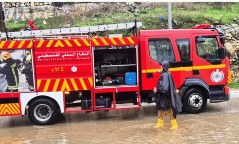 وأفاد الدفاع المدني الفلسطيني بتلقي عشرات البلاغات منذ الصباح، شملت إخلاء منازل جنوب الخليل، خاصة في منطقة الحديدية، عقب غرقها بمياه الأمطار. كما عملت الطواقم على شفط المياه من منازل وروضة أطفال وحضانتين بعد ارتفاع منسوب المياه بشكل مقلق.