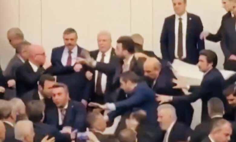 تحوّلت أجواء البرلمان التركي، اليوم الأربعاء، إلى ساحة توتر مفتوح بعدما اندلعت مشادات جسدية بين نواب من الحزب الحاكم والمعارضة، في مشهد غير مألوف داخل قاعة يفترض أنها مخصصة للتشريع والنقاش.