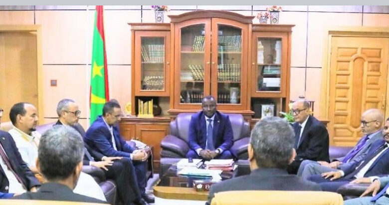 اجتمع معالي وزير العدل السيد محمد ولد اسويدات ظهر اليوم في مكتبه بالمكتب التنفيذي لنادي القضاة الموريتانيين بحضور رئيس المحكمة العليا السيد الشيخ احمد ولد سيد أحمد والمدعي العام للمحكمة العليا السيد محمد الأمين ولد محمد الأمين والمفتش العام للقضاء والسجون السيد أباه ولد امبيريك والمستشار القانوني محمدن ولد منداه و مدير المصادر البشرية السيد محمد فال ولد لزغم ، وقد شكل اللقاء مناسبة لتدارس السبل الكفيلة بتطوير العمل القضائي بما يتماشي و طموح فخامة رئيس الجمهورية السيد محمد ولد الشيخ الغزواني رئيس المجلس الأعلي للقضاء ، وتميز اللقاء بمستوى عال من الإنضباط والجدية والمسؤولية