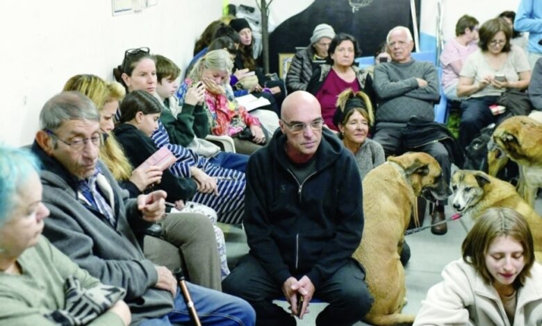 وشوهدت في الملجأ أيضا كلاب أحضرها أصحابها إلى المكان لحمايتها.