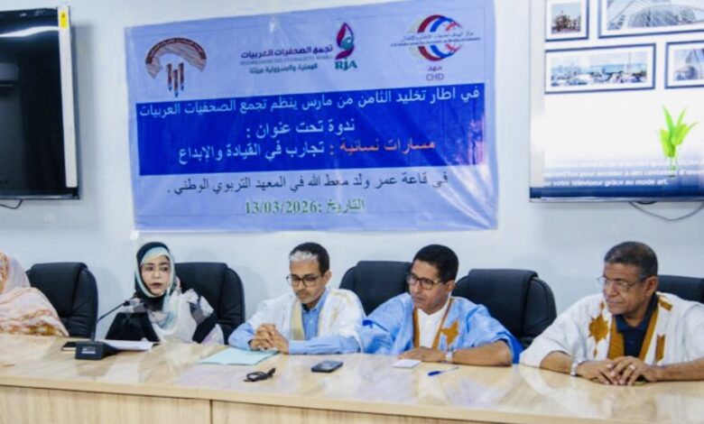 احتضن المعهد التربوي في نواكشوط مساء الجمعة ندوة ثقافية نظمها تجمع الصحفيات العربيات تحت عنوان “مسارات نسائية: تجارب في القيادة والإبداع”، وذلك ضمن فعاليات إحياء اليوم العالمي للمرأة.