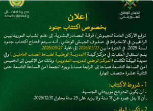 وتندرج هذه الخطوة ضمن جهود تعزيز القدرات البشرية للمؤسسة العسكرية واستقطاب كفاءات شابة مؤهلة.