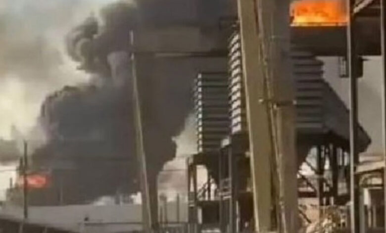 وأظهرت التقارير ومنشورات وسائل التواصل الاجتماعي عمود دخان ضخم يتصاعد من حريق في المصفاة.