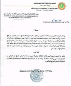 أعلنت وزارة الثقافة والفنون والاتصال والعلاقات مع البرلمان تعليق تراخيص جميع المهرجانات الثقافية والفنية المبرمجة في الولايات الداخلية، سواء ذات الطابع الدولي أو الوطني أو الجهوي، وذلك إلى حين تهيؤ الظروف الملائمة لتنظيمها.