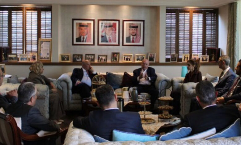 التقى رئيس مجلس الأعيان فيصل الفايز، في إطار زيارة العمل التي يقوم بها إلى المكسيك عدد من السفراء والدبلوماسيين العرب ، وبحث معهم الأوضاع الراهنة في المنطقة ، واخر مستجدات الحرب الإيرانية الأمريكية الإسرائيلية ، إضافة الى ملف القضية الفلسطينية واتفاق وقف اطلاق النار في غزه .