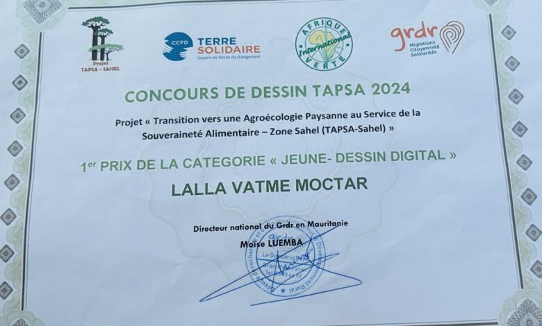 حققت الفتاة الموريتانية لالة فاطمة مختار إنجازًا لافتًا بعد فوزها بالجائزة الأولى في فئة “الشباب – الرسم الرقمي” ضمن مسابقة TAPSA 2024، المنظمة في إطار مشروع دعم الانتقال نحو الزراعة الإيكولوجية وتعزيز السيادة الغذائية في منطقة الساحل.