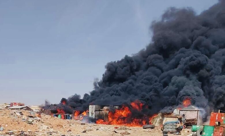 حريق هائل يضرب مستودع محروقات في ازويرات