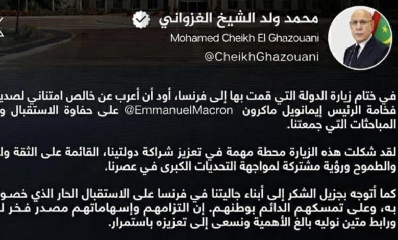 رئيس الجمهورية يعرب عن سعادته بمستوى العلاقات التي تربط موريتانيا بفرنسا