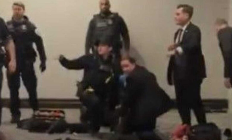 كشفت مقاطع فيديو منتشرة على الإنترنت، لحظة اعتقال المسلح المشتبه بإطلاقه النار خلال حفل عشاء مراسلي البيت الأبيض، السبت.